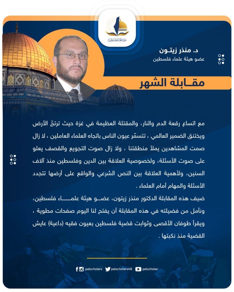 13. فضيلة د. منذر بعد كل هذه التجارب ومعايشة العلماء والقضية، ما هي رسالتكم ووصيتكم للعلماء الشباب الذين يقفون على الحياد أو الذين يضّحون ويستعدون لمعركة الأمة القادمة؟