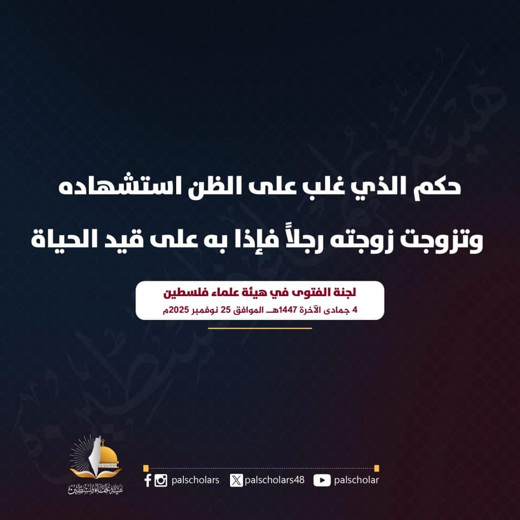 فهذه المسألة قد اشتملت على شهادة ترتب عليها حكم؛ حيث شهد أولئك المجاهدون بموت ذلك الرجل بناء على غلبة ظنهم، وصدر حكم بذلك من القاضي الشرعي بناء على تلك الشهادة، وبعد انقضاء العدة تزوجت برجل آخر؛ وها هنا نبين أمورا: