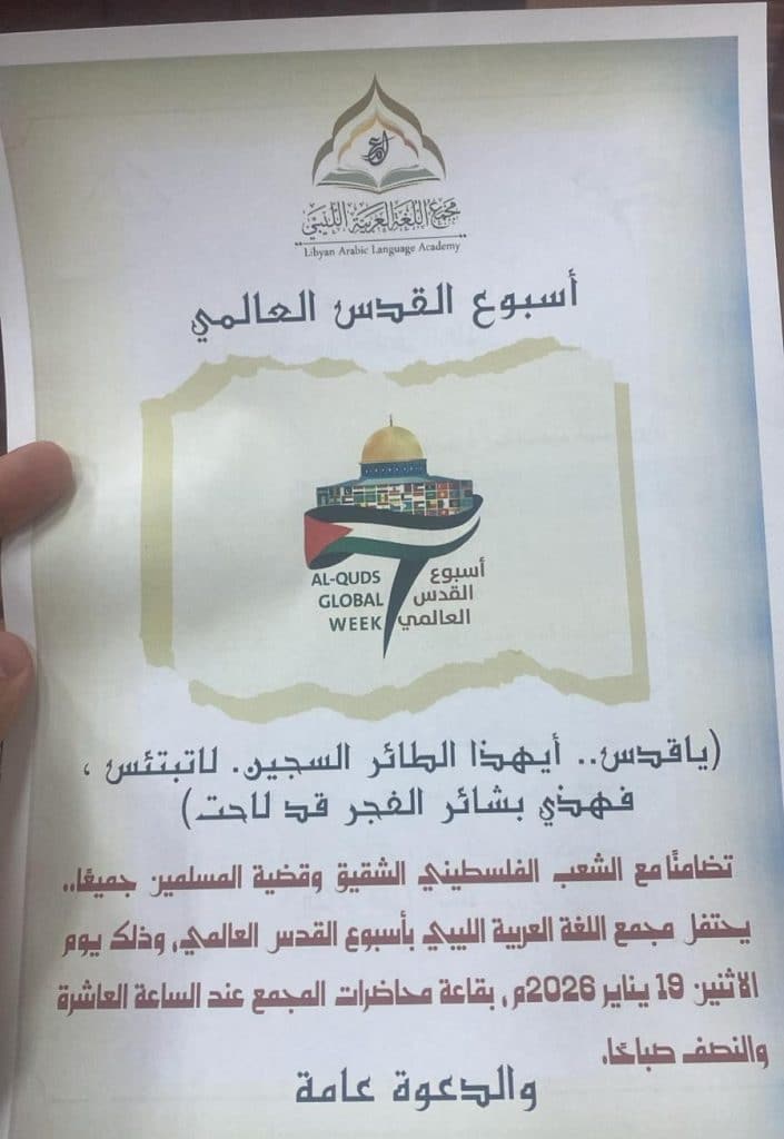 احتفل مجمع اللغة العربية بدولة ليبيا يوم الإثنين 19 يناير 2016 بأسبوع القدس العالمي6 في مركز المجمع.