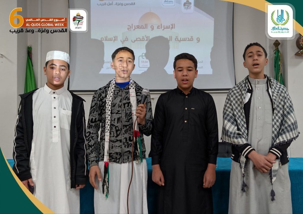 نظم قسم الطلبة والشباب اليوم 27 رجب 1446 الموافق 17يناير 2026 نشاطا متميزا بمناسبة أسبوع الاقصى وذكرى الاسراء والمعراج وتحرير المسجد الاقصى فى معركة حطين .