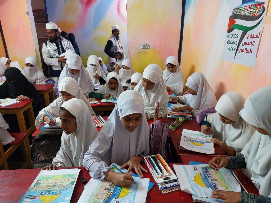 فعاليات الأطفال في مسابقة الرسم والخطابة والاناشيد حول فلسطين في أسبوع القدس العالمي