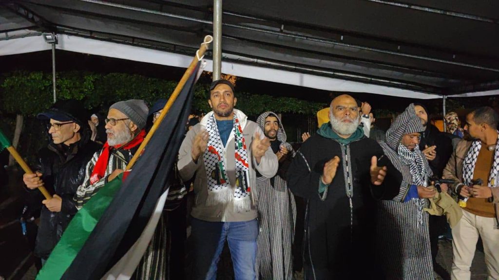 بمناسبة ذكرى الإسـ.ـراء والمـ.ـعراج وتنـ.ـديدا بما يتعرض له المسـ.ـجد الأقـ.ـصى من اعتـ.ـداءات وانتهـ.ـاكات، نظمت ساكنة سيدي عثمان وقفة مسـ.ـجدية تضـ.ـامنية بعد صلاة العشاء من يوم الجمعة 16 يناير 2026 بمسجد لا غالب إلا الله الخيرية، وذلك تلبية لنداء الهيئة المغربية لنصـ.ـرة قضـ.ـايا الأمـ.ـة، عبرت من خلالها عن استنكارها لكل أشكال التهـ.ـويد والتدنيـ.ـس التي يتعرض لها المسـ.ـجد الأقـ.ـصى من طرف الصـ.ـهاينة.
