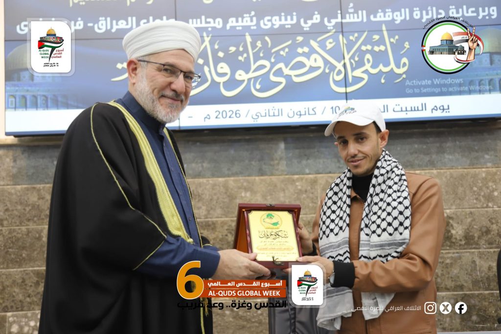 حضور نائب رئيس الائتلاف العراقي لنصرة الاقصى الدكتور أبو بكر العيساوي في (ملتقى الأقصى طوفان الأمة) والذي أقامه مجلس علماء العراق بالتعاون مع الوقف السني / نينوى …… ضمن فعاليات أسبوع القدس العالمي6