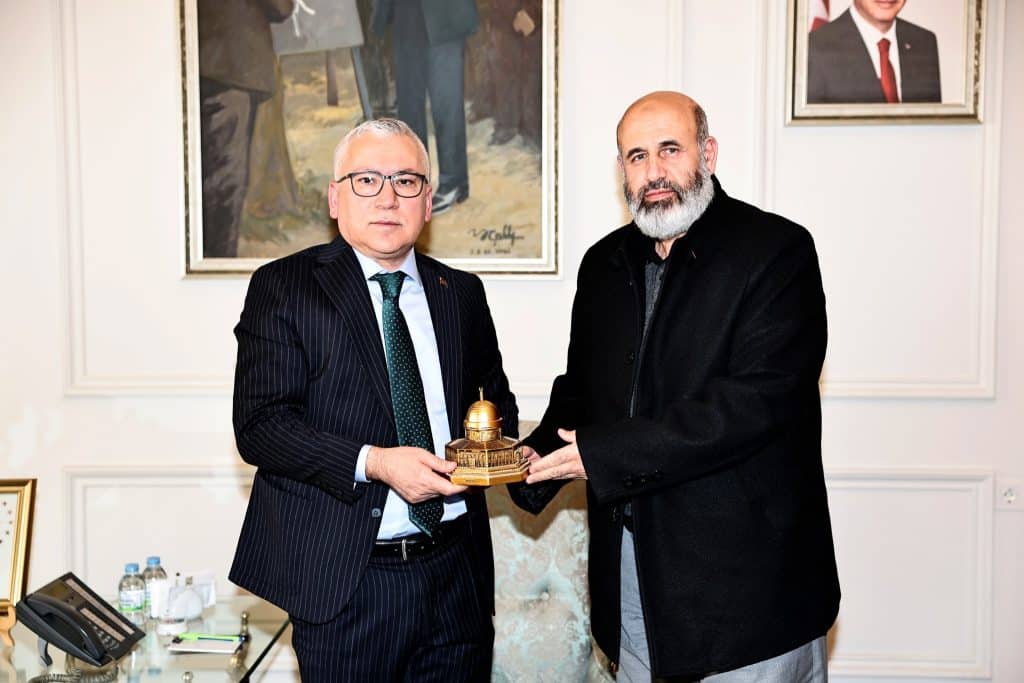 في إطار برنامج الزيارة الرسمية التي يجريها وفد هيئة علماء فلسطين إلى ولاية سِواس، قام الوفد بزيارة والي ولاية سِواس، حيث كان في استقبالهم سعادته، وذلك بحضور فضيلة الشيخ عمر فاروق شاهين، في لقاء اتسم بروح التقدير المتبادل والاهتمام بالقضايا الإنسانية وقضايا الأمة الإسلامية.
